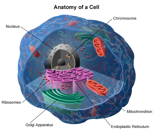 The chromosomes in the body are found in the center of the cells. This is called the nucleus. Outside of the nucleus are mitochondria. These are structures in the cytoplasm (liquid) of the cells. Mitochondria make energy for the cells. Mitochondria also contain their own genes that are separate from the ones in the nucleus.