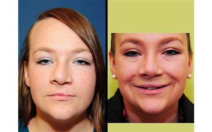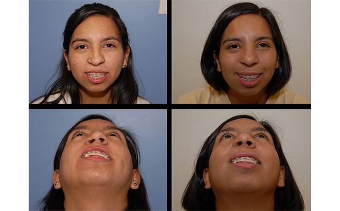 16 year old with right-sided cleft lip and palate. Notice the wide, slumped nostril on the right side. She underwent cleft nasal reconstruction as well as a minor revision to the cleft lip. Photos were taken 3 months following surgery.