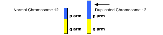 The term "duplication" simply means that a part of a chromosome is duplicated, or present in 2 copies. This results in having extra genetic material, even though the total number of chromosomes is usually normal. Since a very small piece of a chromosome can contain many different genes, the extra genes present in a duplication may cause those genes to not function properly. These "extra instructions" can lead to errors in the development of a baby. One way to think of a duplication is to think of all 46 chromosomes as a cookbook, and each individual chromosome as a recipe. If a deletion is a missing ingredient in the recipe, a duplication is an extra ingredient. One example of a rare genetic disorder of duplication is called Pallister Killian syndrome, where part of the #12 chromosome is duplicated.
