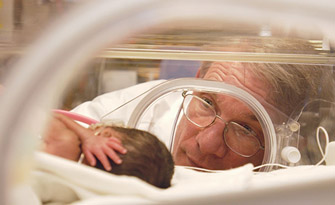 The newly expanded 150-bed, Level IV newborn intensive care unit (NICU) offers nationally-ranked care for the most fragile newborns in a family-centered, caring environment. A 110-foot walkway connects the NICU with labor and delivery at Barnes-Jewish Hospital, so that moms and babies are closer than ever.