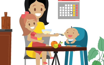 Meals and snacks should always be given at the dining room or kitchen table with parents present. This promotes good eating habits and social development while making sure your toddler doesn’t choke without you around. Turn off the television and keep mobile devices away from the table to make sure your child’s focus is on the meal at hand.