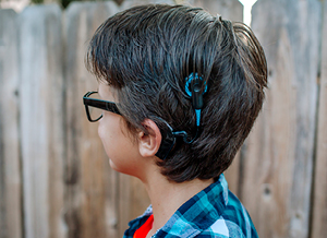 “In cases where hearing loss is so significant that a hearing aid simply creates distortion, we have two other options. One is a Contralateral Routing of Signal (CROS) system, through which a microphone placed by the poorer ear wirelessly routes a sound signal to a speaker worn in the hearing ear,” explains Bernadette Rakszawski, AuD, CCC-A, pediatric cochlear implant audiologist. “A second option is a bone conduction hearing system that also positions a microphone at the poorly hearing ear but uses the vibration of sound through the skull bones to activate the hearing ear. The benefit of these devices is that a patient at least has access to sound presented to his or her poorer hearing ear; however, that still doesn’t help localize to where the sound is coming or hear clearly in background noise.”
