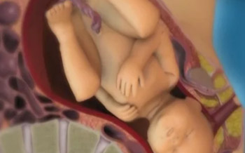 When the fetus has matured and birth is imminent, the baby begins to go through a series of movements that help it navigate through the birth canal. As the uterus begins to contract with the pains of labor, the opening of the uterus, called the cervix, dilates to allow the baby to pass into the vagina. This muscular tube expands to accommodate the baby's head and shoulders while uterine contractions continue until the baby enters the world in what is in most cases a downward facing position.