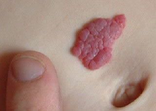 - Strawberry hemangiomas are red birthmarks that are raised or increasing in size.
