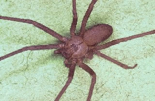 - A brown spider with long legs (total size ½ inch or 12 mm).