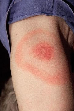 - Red-ring or bull's eye rash occurs around a deer tick bite. Note: the rash of Lyme disease starts 3 to 30 days after the bite.