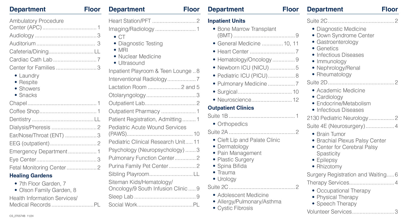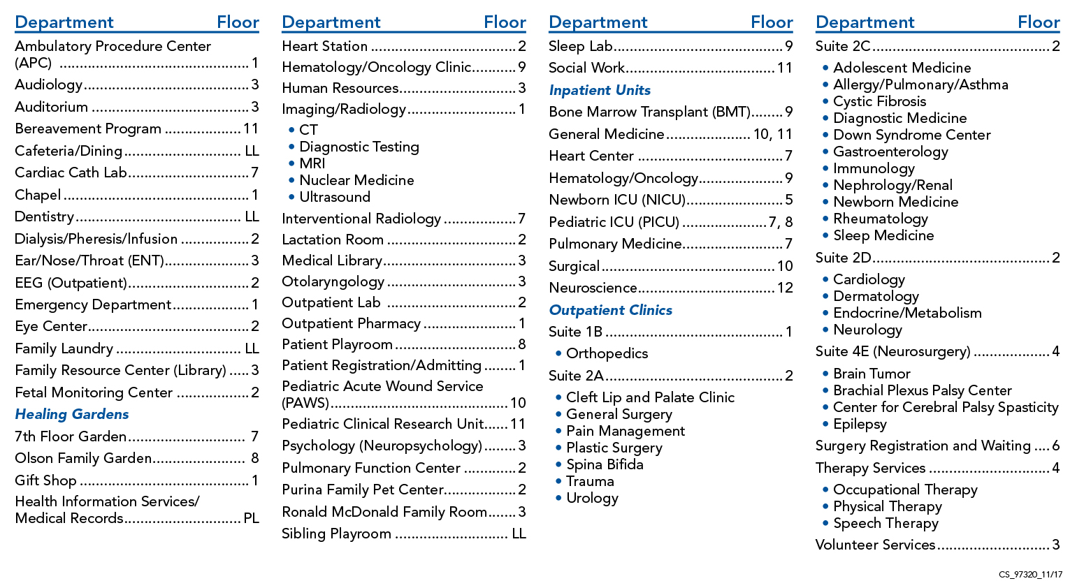 Map and Directory for Patients and Visitors